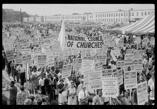 The NAACP, the SCLC, CORE, SNCC, and other civil rights organizations supported Randolph and Bayard Rustin in organizing the March on Washington for Jobs and Freedom. The march demanded an end to racial discrimination and segregation in public places, employment, education, housing, and other settings. The Civil Rights Act of 1964 was enacted as a result of King's famous "I Have a Dream" speech, which was the march's pinnacle and was delivered at the Lincoln Memorial.