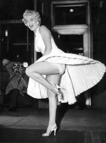 En 1949 dio su primer golpe en aras de la celebridad al posar para una sesión fotográfica que se trata de las imágenes que muestran en tomas cenitales a Marilyn desnuda sobre un cubrecamas de color rojo. Algunas de las fotos aparecerían ese mismo año en un calendario, -