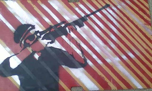 Banksy is one of the most popular graffiti artists out right now. During 2010 he relased a movie called Exit Through the Giftshop. This is a movie all about the current street art scene. It's a documentary that talks about multiple famous graffiti artists. Not only did I enjoy the movie, but I also looked up many of the artists in the film. I studied their work as best as I could in hopes that I could some day create art like they did.
