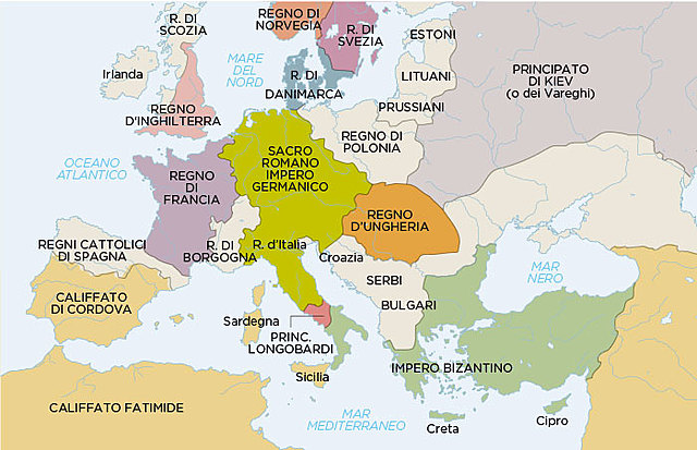 la notte di natale dell'800 Carlo Magno re dei franchi viene incoronato imperatore dal papa