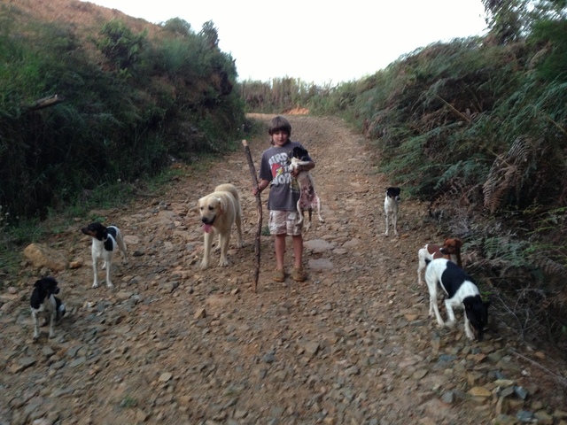 haciendo una caminata por la casa, con mis perros.