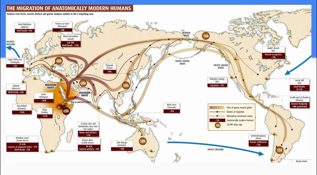 (Migration) The out of Africa theory is that all humans originally came from Africa and moved out of there. According to it we left Africa around 2 million years ago. This challenged the multi regional theory that says we came from different places and all ended up with the same body structures. The out of Africa theory is important because it explains why we have the same basic structure but the little differences came from adaptations based on our environments once we left.