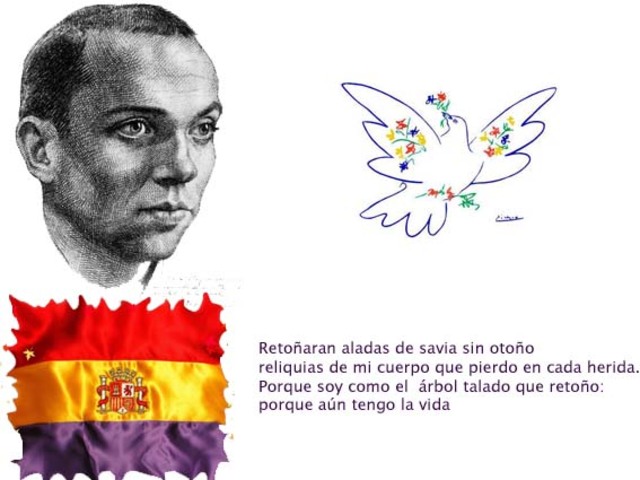 Con el comienzo de la guerra civil se une al bando republicano, se alista, formando parte del 5 regimiento y se une al partido comunista de españa. realiza dos obras importantes durante esta estapa: "Nanas a la cebolla" dedicadas a su segundo hijo, "Cancionero y romancero de ausencias." y "Viento del pueblo"