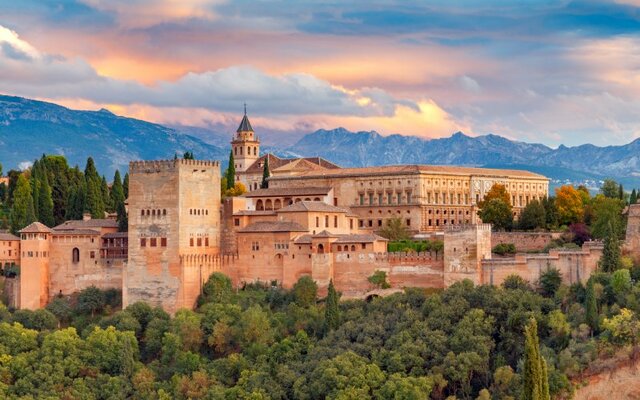 La Alhambra es un conjunto monumental formado por palacios, torres y murallas, jardines y acequias. Toda una ciudad medieval amurallada, residencia de sultanes y reyes desde el siglo XIII hasta el siglo XVI. Construida entre los siglos XIII y XIV, fue la capital del gran reino nazarí que llegó a abarcar un gran territorio del sur peninsular, incluyendo Granada, Almería y Málaga, además de parte de otras provincias.