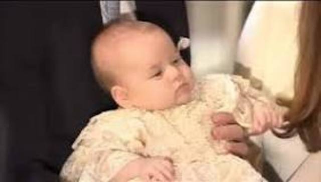 Su bautizo tuvo lugar en la Capilla Real del Palacio de St. James, siendo administrado por el Arzobispo de Canterbury, Justin Welby.27 El príncipe Guillermo fue el encargado de llevar en brazos a su hijo el príncipe Jorge al arribar a la capilla para la ceremonia de bautismo