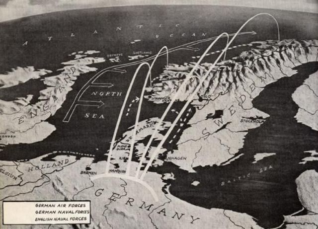 Det tyske krigsskipet "Blücher" senkes under invasjonen av Oslo. Senket i Oslofjorden/Drøbaksundet