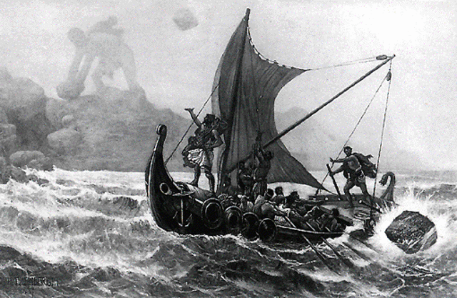 As they escape Polyphemus hurls boulders at them. Odysseyus feeling cocky tells them the giant who really beat him, Odysseyus. The giant calls upon his father, Posideon, god of the sea, to curse Odysseyus. Posideon then curses Odysseyus so that if he were to ever return home, he find it in shambles and all his men dead.