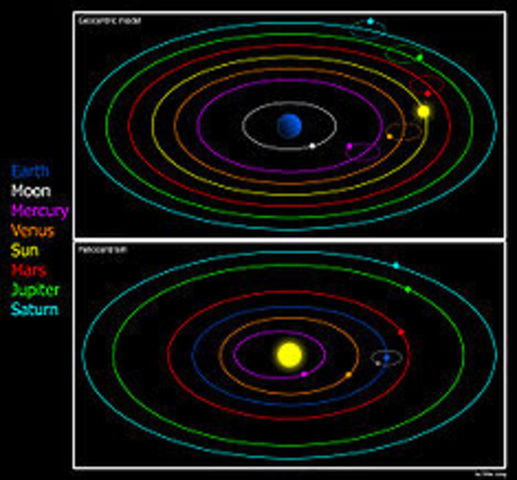 Kopernikus siger: "Jorden er ikke universets centrum, men kun centrum for tyngden og månesfæren. Alle sfære drejer sig omkring Solen som deres midtpunkt, og derfor er Solen universets centrum."