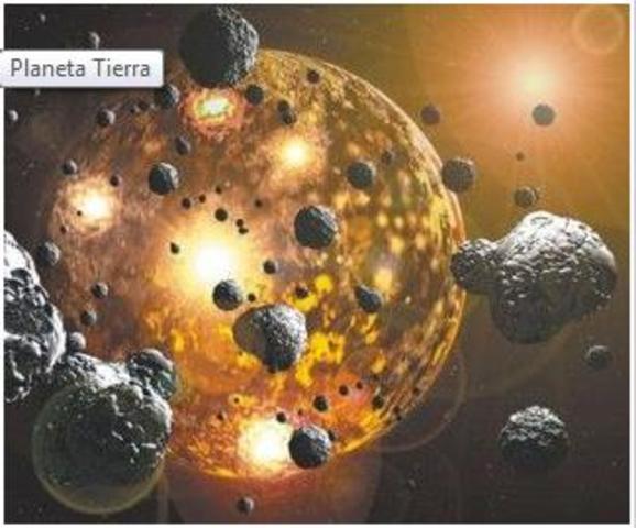 Hace 4.540 millones de año. La tierra parecía un infierno tenia temperaturas altas, no había aire solo dióxido de carbono, nitrógeno y vapor de agua. Era una roca liquida (lava).