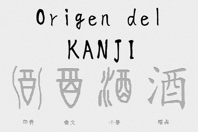 Muestra de una inscripción de kanji antiguo en bronce