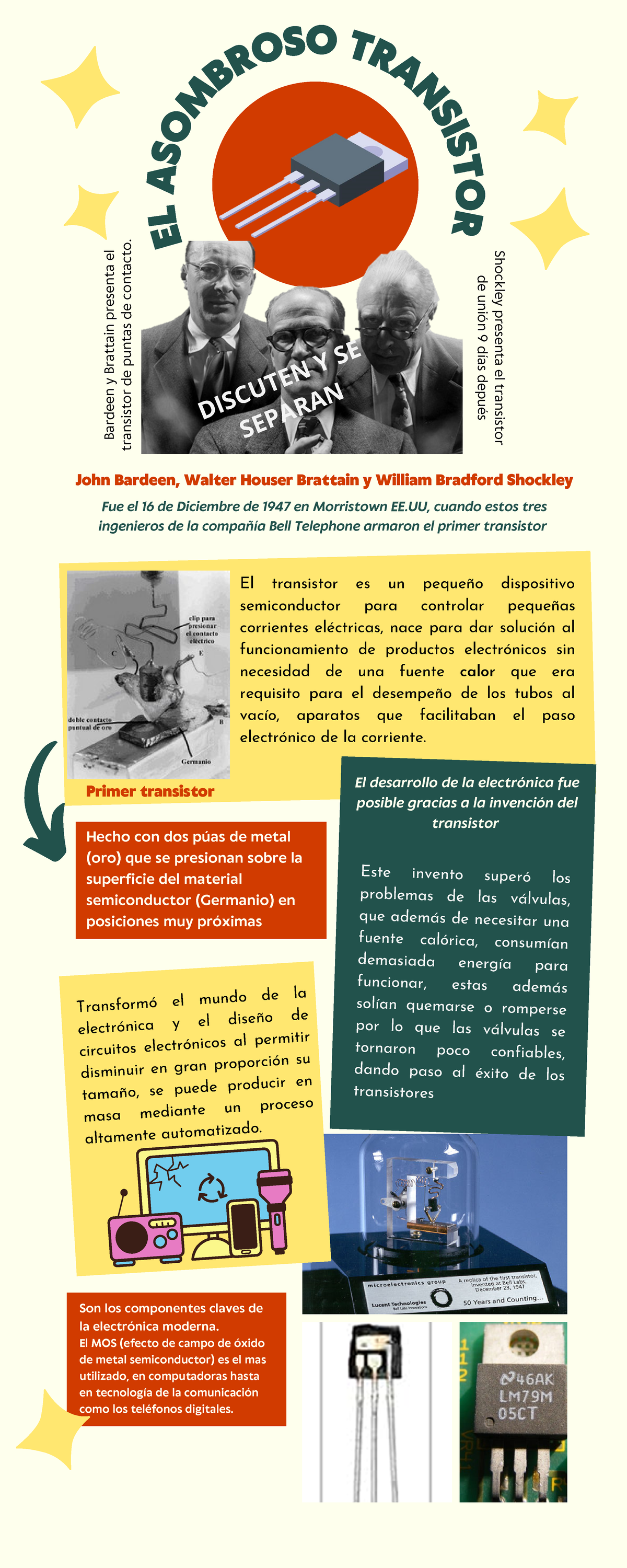 Tres ingenieros de Bell Laboratories inventaron el transistor, lo cual, sin ninguna, supuso un avance fundamental para toda la industria de telefonía y comunicaciones.