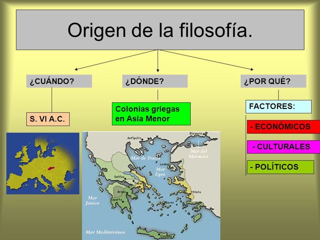 La filosofía surgió entre los siglos VII y VI a de C. Surgió de forma simultanea en India, China, Egipto y Grecia.