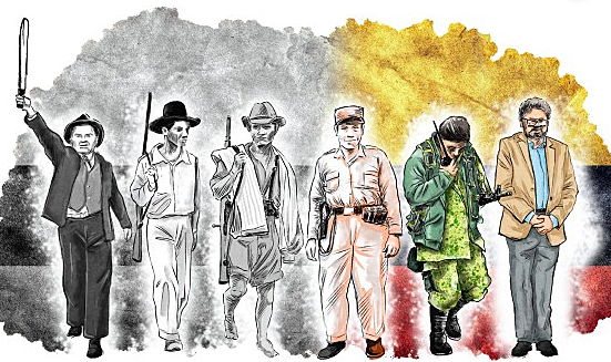 FARC (Fuerzas Armadas Revolucionarias de Colombia): Surge cuando algunos campesinos liberales se organizan para defender sus tierras de los conservadores, sin embargo su objetivo cambia a volver a Colombia un país comunista.