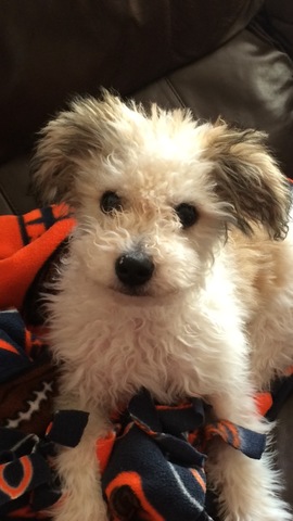 Oscar was born in Texas to a miniature Poodle, however his father was a Maltese. Thus, he is what is called a Maltipoo. At birth he had grey, black, white, cream and apricot coloring in his fur. As he grew his adult fur is only cram and apricot, with his grey and black only remaining in his ears.
