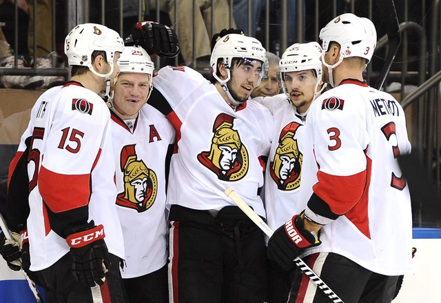 Ottawa Senators 2014-15 season By Ottawa Sun Oct 9, 2014 Preds 3, Sens 2 Preds knock off Sens in opener Oct 11, 2014 Sens 3, Bolts 2 (SO) Sens shock Bolts in SO Oct 13, 2014 Sens 1, Panthers 0 Sens shutout Panthers Oct 16, 2014 Sens 5, Avs 3 Sens win home opener Oct 18, 2014 Sens 3, Jackets 2 Hoffman delivers in 3-2 win Oct 26, 2014 Hawks 2, Sens 1 Hawks down Sens Oct 26, 2014 Devils 3, Sens 2 (OT) Devils knock off Sens in OT Oct 28, 2014 Sens 5, Jackets 2 Sens crack Jackets Oct 30, 2014 Hawks 5, Sens 4 (SO) Hawks down Sens in shootout Nov 1, 2014 Bruins 4, Sens 2 Bruins beat up Sens Nov 5, 2014 Sens 3, Wings 1 Sens clips Wings Nov 6, 2014 Sens 3, Wild 0 Sens blank Wild Nov 8, 2014 Jets 2, Sens 1 (SO) Jets knock off Sens in SO Nov 9, 2014 Leafs 5, Sens 3 Leafs down Sens Nov 11, 2014 Canucks 4, Sens 3 (OT) Canucks down Sens Nov 13, 2014 Sens 4, Oilers 3 (OT) Hoffman pots pair in win Nov 15, 2014 Flames 4, Sens 2 Flames knock off Sens Nov 20, 2014 Sens 3, Preds 2 Sens hold off late push from Predators Nov 22, 2014 Blues 3, Sens 2 Singing the Blues
