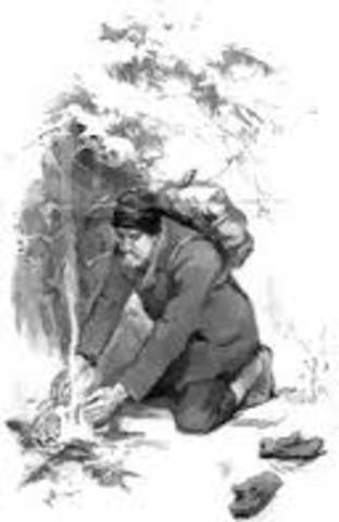 The climax of this story is when falls through the ice and here is a quote from when he fell through the ice. “At the instant he broke through he felt the cold water strike his feet and ankles, and with half a dozen lunges he made the bank. He was quite cool and collected. The thing to do, and the only thing to do, was to build a fire.”