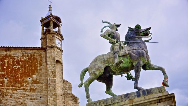 La Torre del Alfiler es un baluarte castrense situado al N. de la Plaza, pues en sus orígenes medievales se construyó como espigón defensivo de la torre de la villa musulmana, formando parte de la muralla de la alcazaba.