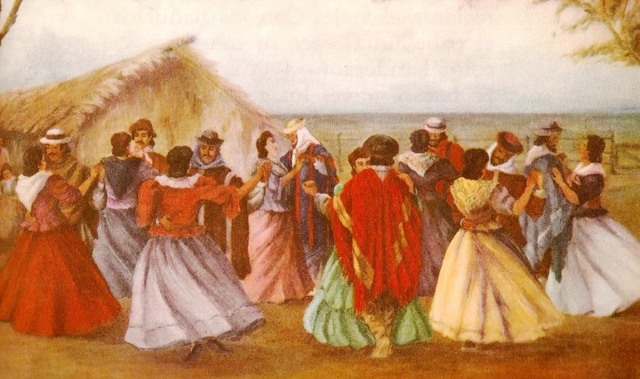 Momento de las grandes inmigraciones. Al respecto Emeric Essex Vidal en las "Ilustraciones Pintorescas de Buenos Aires y Montevideo" (Londres, 1820), dice: "Los mayordomos, capataces o propietarios, y en general todos los que pueden comprarlo, usan un jubón, chaleco, calzones, calzoncillos, sombrero, zapatos y poncho. Sus peones, en cambio, usan solamente el chiripá, que es un trozo de burda tela de lana atada a la cintura con una cuerda.