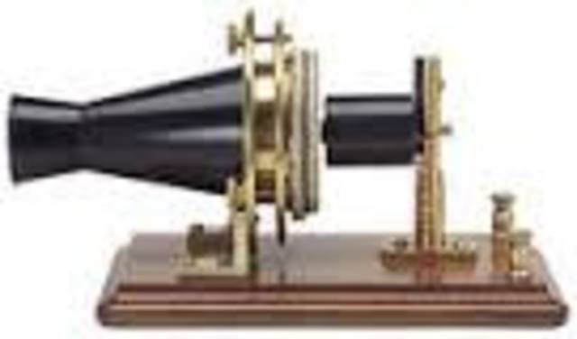 Bell's telephone transmitter (microphone) consisted of a double electromagnet, in front of which a membrane, stretched on a ring, carried an oblong piece of soft iron cemented to its middle. A funnel-shaped mouthpiece directed the voice sounds