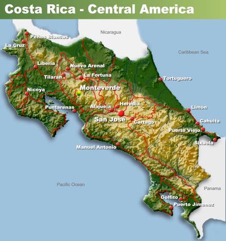 - Localización en mapa de Costa Rica en la pizarra