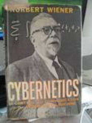 Un año despues Norbert Wiener publica su libro con el nombre "Cibernetica: Control y comunicaciones en los animales y maquinas" en la busqueda de dar un nobre a la teoria para relacionar control con comunicacviones y al terreno que podria cubrir una eventual teoria de estas acciones.