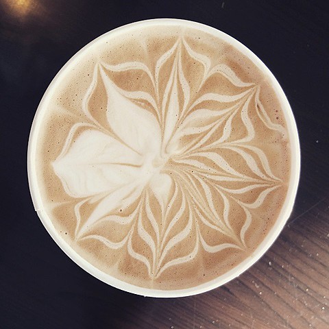 The rosette pattern developed by Schomer recreating the technique based on a photograph he saw from Cafe Mateki in Italy.