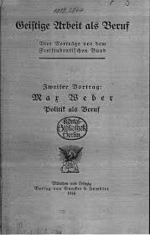 Propuesta histórica y sociológica para el tratamiento de temas políticos asociados a las burocracias estatales y a los partidos políticos. Presenta taxonomía de autoridades legítimas: tradicional, carismática, y legal-racional. Ha contribuido en la ciencia política mediante la diferenciación entre el político y el "científico" de la política.