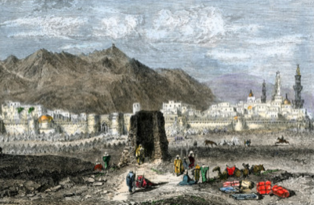 The Prophet Muhammad (saw) left Medinah with his companions to perform Umrah in Makkah, after seeing it in a dream. He took 70 camels and 1400 Muslims. The Quraish were alarmed and Khalid ibn Waleed was sent with 200 men to to prevent the entry of the pilgrims. The Prophet then re-routed the expedition to Al-Hudaibiyah, a well which lies twenty-two kilometers to the north-west of Makkah. After many long days of peace negotiations, the Quraish and the Muslims established a peace treaty.