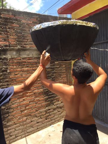 Se coloco carton en los intermedios de cada aspa para asi empezar el relleno de la estufa