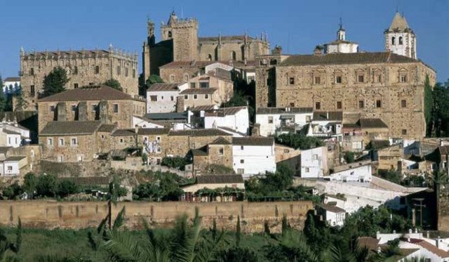 vista de pájaro de la ciudad monumental de cáceres