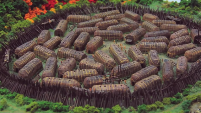 Las casas estaban fabricadas en madera y corteza, las unidades residenciales estaban agrupadas en aldeas y rodeadas por construcciones defensivas. -