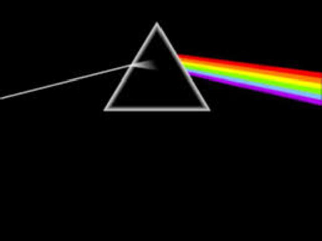 Descompone la luz blanca con un prisma y esta luz al atravesar por el prisma se descompone en varios colores