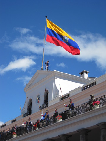 Every Monday at 11am in Quito at the Prsidential Palace citizens gathers for the changing of the guards. The energy and excitement fills the air it is overwhelming the crowds size. Many Ecuadorians as well as a tourists attend this once a week ceremony as street vendors purse the crowd and the band plays in the background.