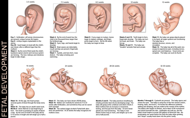 •The embryo grows from a tiny speck about 2mm - the size of a pin head.