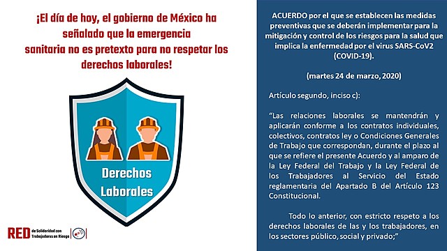 Secretaría del Trabajo y Previsión Social (STPS) https://www.gob.mx/stps/prensa/guia-de-accion-para-los-centros-de-trabajo-ante-el-covid-19-238630?fbclid=IwAR04ybSatL10bb0_LbsGB4wfhGpZIarlES7rW36KBaRxfWBM-P2ApcmLFnA