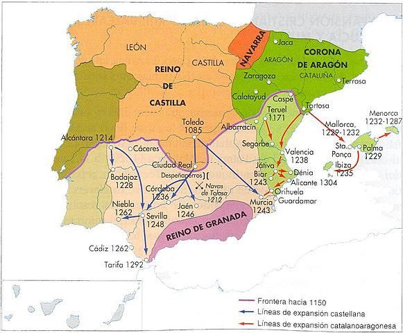 A partir de la victoria en la Batalla de Navas de Tolosa, el avance crsitiano finalmente pudo pasar a través de Valencia y del Guadalquivir. Se fueron tomando todos los territorios hasta quedar únicamente el reino de Granada, hasta 1492