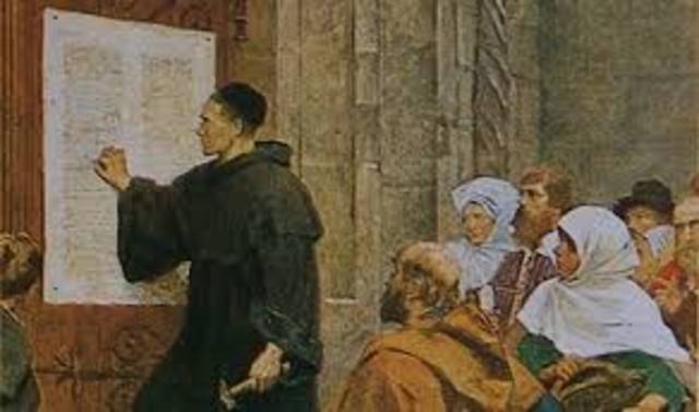 But in 1517 Luther penned a document attacking the Catholic Church’s corrupt practice of selling “indulgences” to absolve sin. His “95 Theses,” which propounded two central beliefs—that the Bible is the central religious authority and that humans may reach salvation only by their faith and not by their deeds—was to spark the Protestant Reformation.