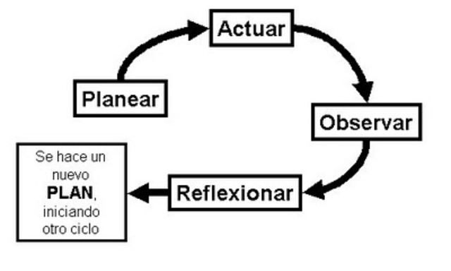 Contempla la necesidad de la investigación, de la acción y de la formación con tres elementos esenciales para el desarrollo profesional