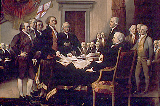 The Declaration of Independence, written by Thomas Jefferson and adopted by the second Continental Congress on July 4th, 1776. It declared independence from the British government.