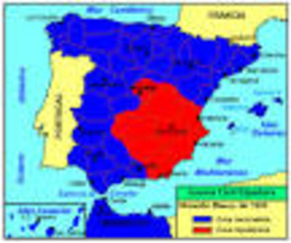 Resumen: La Guerra Civil Española (17 de julio de 1936-1 de abril de 1939) By romanhfd Period: Jul 1, 1936 to Aug 1, 1936 En la Batalla de Guadarrama los milicianos impiden que los sublevados entre a España. La primera batalla de la Guerra Civil Jul 14, 1936 La muerte de José Calvo Sotelo precipita la guerra civil española. Biografia Jul 17, 1936 Comienza la sublevación por el ejército de África. Jul 18, 1936 Las tropas militares de toda España se unen a la guerra en contra del Frente Popular. Jul 20, 1936 El General José Sanjurjo muere en un accidente aereo. El bando sublevado es ahora dirigido por Francisco Franco y Emilio Mola. https://es.wikipedia.org/wiki/Jos%C3%A9_Sanjurjo Period: Aug 1, 1936 to Aug 30, 1936 Ejercito de Africa ocupa gran parte de Extramadura y las ciudades de Mérida y Badajoz. Period: Sep 1, 1936 to Sep 30, 1936 Militar Francisco Franco envia tropas con exito a Alcázar. https://es.wikipedia.org/wiki/Francisco_Franco' >Biografia de Dictador Español</a> Period: Feb 1, 1937 to Feb 28, 1937 Los Republicanos pierden a Malaga. Apr 26, 1937 La Legión Condor bombardea a Guérnica. Jul 3, 1937 General Mola muere en accidente aereo. El General Francisco Franco pasa a ser el lider absoluto del bando de los sublevados. Oct 20, 1937 La República pierde a la ciudad de Gijón. Jul 25, 1938 Los nacionalistas ganan la Batalla del Ebro. Jan 26, 1939 Militar Francisco Franco entra region de Cataluña cruzando las fronteras de Francia Mar 28, 1939 Las Tropas Nacionales entran victoriosamente a Madrid. Apr 1, 1939 La Guerra Civil llega a su fín. Wikipedia: Final de la guerra