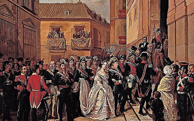 Isabel II "la Reina Castiza" fue reina de España entre 1833 y 1868,2 gracias a la derogación del Reglamento de sucesión de 1713 (normalmente «Ley Sálica» aunque, técnicamente, no lo fuera) a por medio de la Pragmática Sanción de 1830. Esto provocó la insurgencia del infante Carlos María Isidro, hermano de Fernando VII y tío de Isabel II, quien, apoyado por los grupos absolutistas (los denominados «carlistas») ya había intentado proclamarse rey durante la agonía de Fernando.