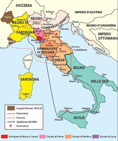 Le tre tendenze risorgimentali etano la repubblica, la monarchia e il federalismo. Caro Cattaneo affermava il federalismo con a capo il popolo; Vincenzo Gioberti affermava ugualmente il federalismo, però essendo sacerdote voleva a capo il papa. Cavour differentemente affermava la monarchia con a capo Vittorio Emanuele II.