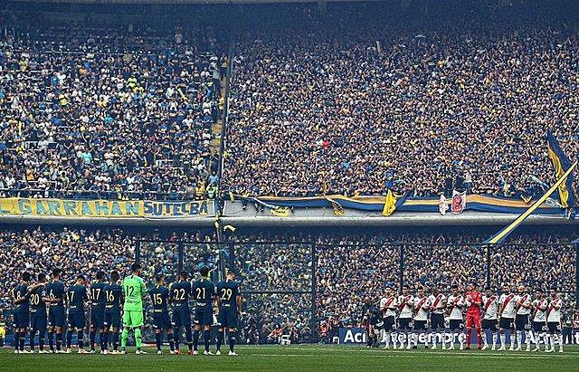 La ida de esta final se jugaba en la cancha de Boca. A los 33´m. del partido, Ábila marca para Boca. River, tras sacar del medio, en solo dos pases,empata el partido al m. 34´, con una gran asistencia de Martinez y una gran definición cruzada de Pratto. Al m. 44´, Benedetto hace el segundo gol para Boca. Luego, a los 60´ m., Martinez patea un tiro libre al que Izquierdoz cabecea para atrás y se hace gol en contra. En el m. 88´, Armani le ataja un mano a mano a Benedetto. El partido terminó 2-2.