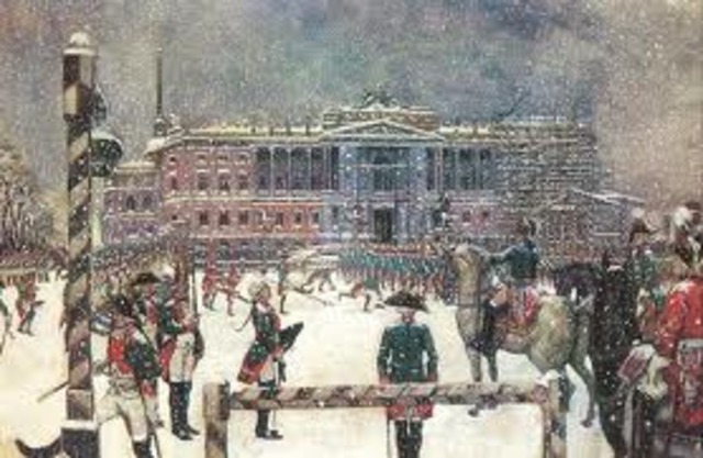 A group of army officers takes advantage of the situation and leads an uprising known as the December Revolt, where they demanded a constitution and other reforms based upon liberal ideas they had seen while fighting Napoleon.