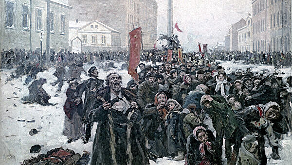 Делегация рабочих, направлявшихся к Зимнему дворцу во главе с Георгием Газоном, расстреляна