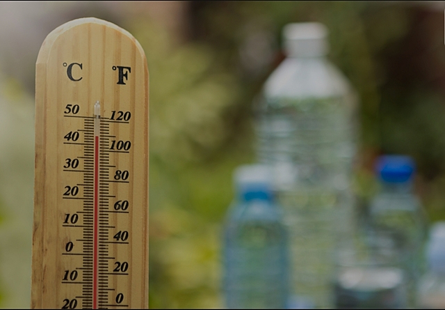 Termómetro de vidrio con mercurio en su interior -