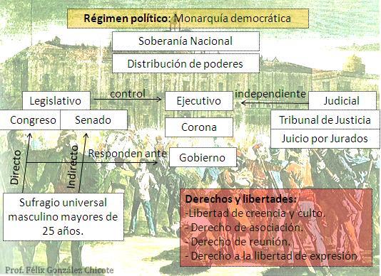 Al final de la etapa de alternancia entre moderados y unionistas, se inició un levantamiento revolucionario en Cádiz que supuso el destronamiento de la reina Isabel II y el comienzo del periodo denominado Sexenio Democrático. A partir de ella tiene lugar en España el primer intento de su historia de establecer un régimen político democrático.