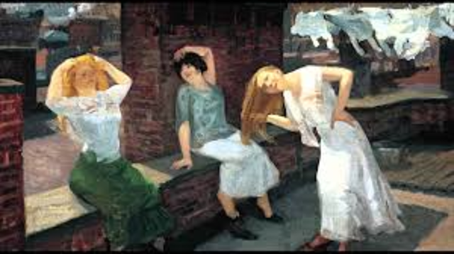 Painters in the Ash Can School responded to the changing times in a very different way than the Gilded Age, creating works of gritty urban realism that captured over-crowded cities, rapid industrialization and burgeoning immigrant cultures.