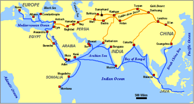In 114 BC the central Asian trade routes were expanded by the Han Dynasty (China) -