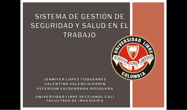 Sistema de Gestión de seguridad y salud en el trabajo. By universidadlibregrupo01 May 19, 2015 Se hizo una visita a la la empresa Elite Metal-mecánica May 20, 2015 Se analiza la información recogida de la visita May 21, 2015 Se determina el problema raíz, causas y soluciones. May 22, 2015 Se llena la tabla de Plan de acción May 25, 2015 Se recibe asesoria por parte de la docente Maria Mercedes Sinisterra Diaz. Jun 3, 2015 Sustentación del trabajo a los docentes Ingeniera Maria Mercedes Sinisterra Diaz y el Ingeniero Freddy Wilson Londoño.